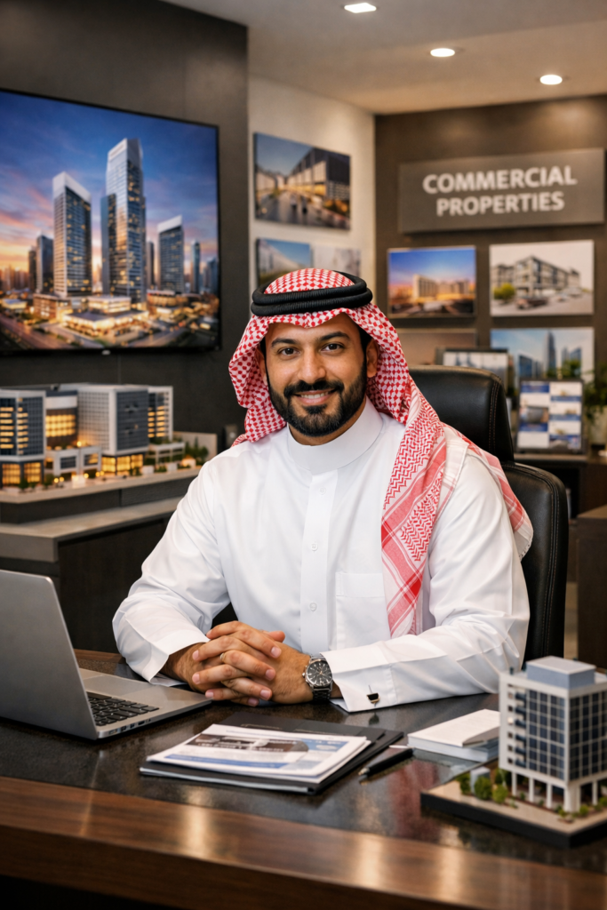 نحن منشأة متخصصة في تسويق العقارات التجارية، نقدم حلولًا احترافية متكاملة لتسويق وإدارة وتأجير وبيع الأصول العقارية التجارية بمختلف أنواعها، بما يشمل المكاتب الإدارية، المجمعات التجارية، المعارض، المستودعات، والمشاريع الاستثمارية.